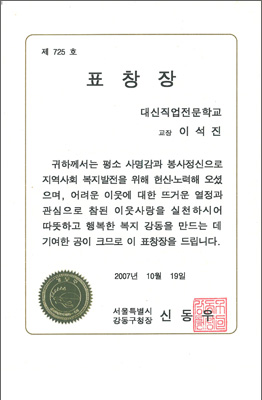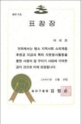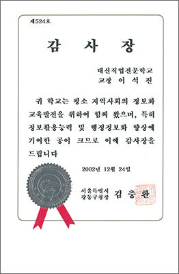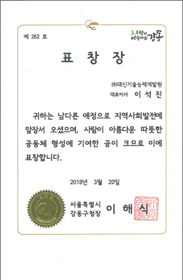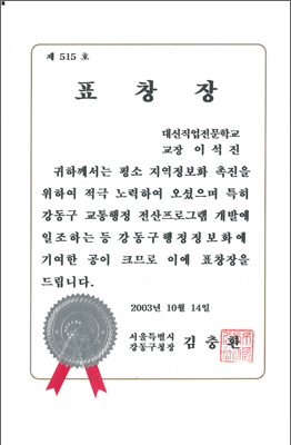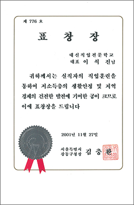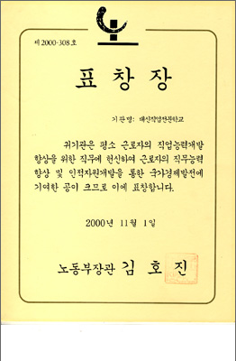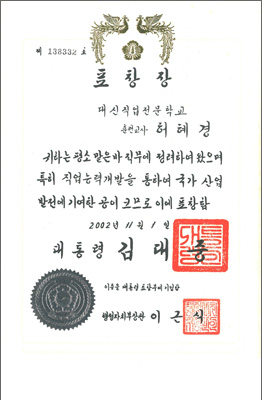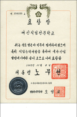 2005³â ÃÖ¿ì¼ö ÈÆ·Ã±â°üÀ¸·Î ¼±Á¤ µÇ¾î ¹Î°£ Á÷¾÷ÈÆ·Ã±â°ü ÃÖÃÊ·Î ´ëÅë·ÉǥâÀ» ¼ö»óÇÏ¿´½À´Ï´Ù.