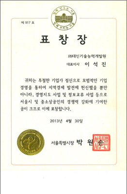 °æÂûûÀå °¨»çÀå / Á¤ºÎÆ÷»ó ´ëÅë·É ǥâ ¡°ÃÖ¿ì¼öÈÆ·Ã±â°ü¡± ¼ö»ó / Çѱ¹ ¼ºñ½ºÇõ½Å ´ë»ó