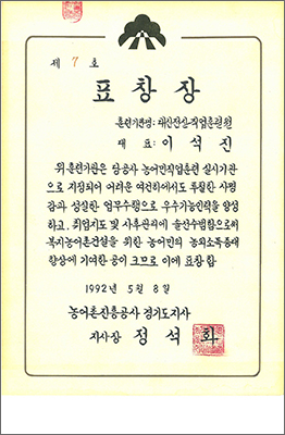 ÀåÇÑÇѱ¹Àλó ¼ö»ó / ¼ÛÆÄ±¸Ã»Àå ǥâ / Çѱ¹ »ý»ê¼ºº»ºÎ ¡°Ç°Áú°æ¿µ½Ã½ºÅÛ(ISO)"ÀÎÁõ ȹµæ / °¿øµµÁö¹æ°æÂûûÀå °¨»çÀå